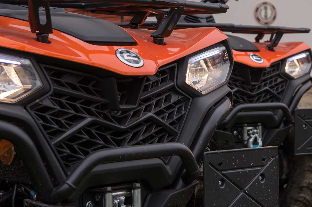 CFMOTO X4 CForce 450L, ATV cu 2 locuri din line-up-ul CFMOTO, marcă recunoscută la nivel internațional pentru produsele sale foarte performante. Modelul este foarte ușor de pilotat și manevrat mulțumită sistemului de transmisie automată CVT cu tracțiune selectabilă 2WD/4WD și prin echiparea cu suspensii independente cu brațe duble, optimizate pentru off road. Performanțele notabile de care acest ATV 4×4 este capabil sunt facilitate de motorul compact și eficient de 400cc 29cp, cu 1 cilindru în 4 timpi, iar puterea este complementată excelent de designul modern și atractiv. În concluzie, CFMOTO X4 CForce 450L este un ATV 400cc robust și de încredere, fiabil, recomandat pasionaților de off road.